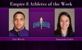 Luis Rivera and Samantha Goble have earned weekly awards from the Empire 8 Conference for the week ending December 13. Rivera garnered the male Field Athlete of the Week, while Goble was the female representative for the Track Athlete of the Week.