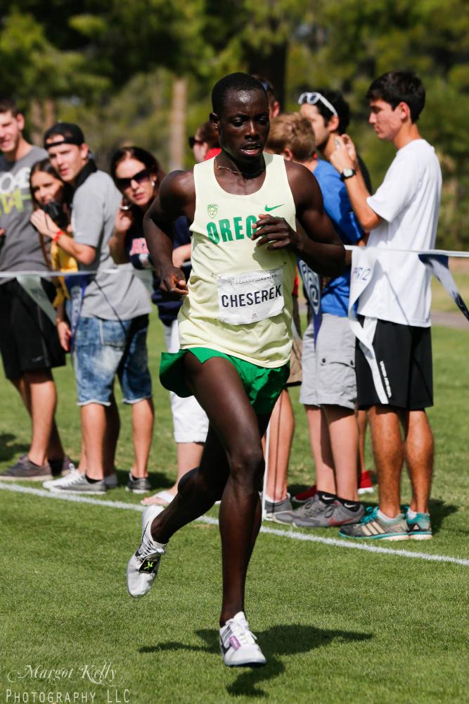 Cheserek season is over with minor back injury By Doug Binder, DyeStat Editor Edward Cheserek's decorated college track and field career has come to an end because of a minor back injury, according to a report by the Register-Guard's Chris Hansen. The University of Oregon senior has won an astonishing 17 NCAA championships in cross country, indoor track and outdoor track. Oregon release details all 17 victories "As much as Edward would like to run, it is our responsibility to make decisions ... in the best interest of our student-athletes," Oregon head coach Robert Johnson told Hansen. Cheserek was scheduled to compete later this week in the 5,000 and 10,000 at the NCAA West Regional prelims.