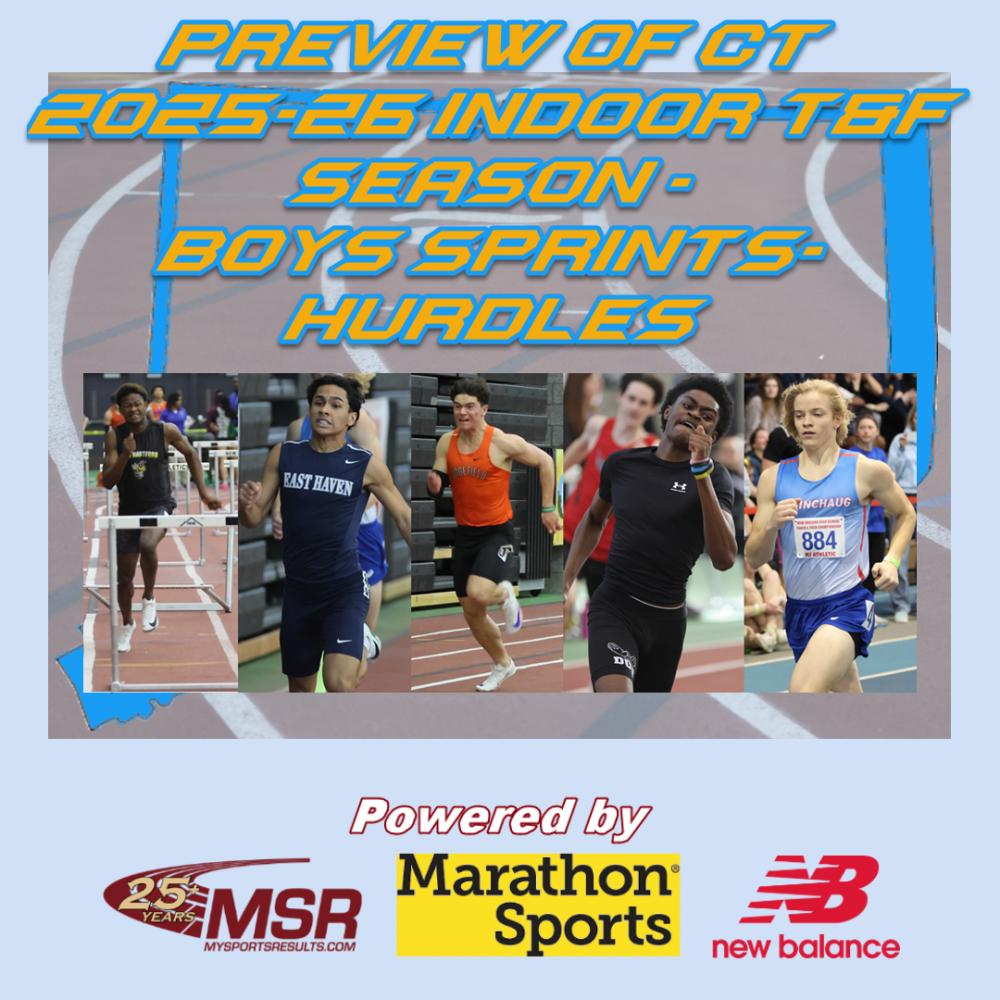 By Senior Correspondent Marty Ogden, Editing and Graphics by Ron Knapp As we begin our 26th year of CT Indoor T&F coverage that includes news, photos, results and records of our state athletes and teams, MySportsResults kicks off the 2025-2026 Indoor Track & Field season with our previews. We will once again take out our crystal ball to predict which individuals will make a difference for their teams as they work towards qualifying for the Class and Open Championships in February. In our second preview, MySportsResults will do our best to highlight some of the top returnees from last year in the boys sprint and hurdle events. The boys return only two of the eleven individual champions from 2025 so we could obviously see some new names at the top of the podium. But with the depth of talent in the state, someone is always ready to step up and shine.