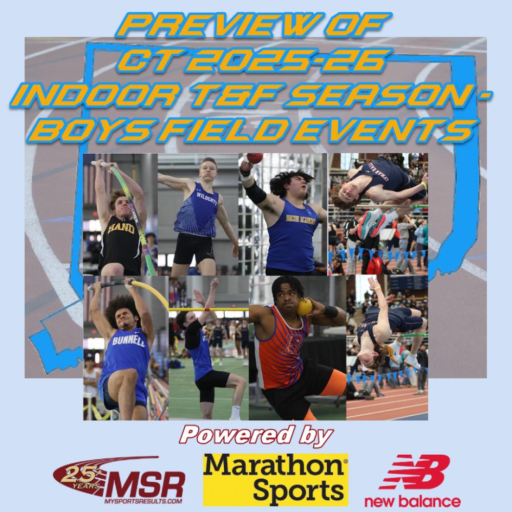 By Senior Correspondent Marty Ogden, Editing and Graphics by Ron Knapp As we begin our 26th year of CT Indoor T&F coverage that includes news, photos, results and records of our state athletes and teams, MySportsResults kicks off the 2025-2026 Indoor Track & Field season with our previews. We will once again take out our crystal ball to predict which individuals will make a difference for their teams as they work towards qualifying for the Class and Open Championships in February. In our next preview MySportsResults will do our best to highlight some of the top returnees from last year in the boys field events. The boys return only two of the eleven individual champions from 2025 so we could obviously see some new names at the top of the podium. But with the depth of talent in the state, someone is always ready to step up and shine.