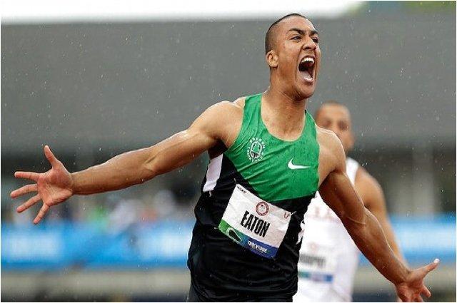 Robert Deutsch, USA TODAY Ashton Eaton set a world record in the decathlon after winning the 1,500. The former Oregon star was cheered by the home crowd at Hayward Field on Saturday. In triumphant ascendance: new world record-holder Ashton Eaton, who is looking more like a comic book superhero than a track and field athlete.