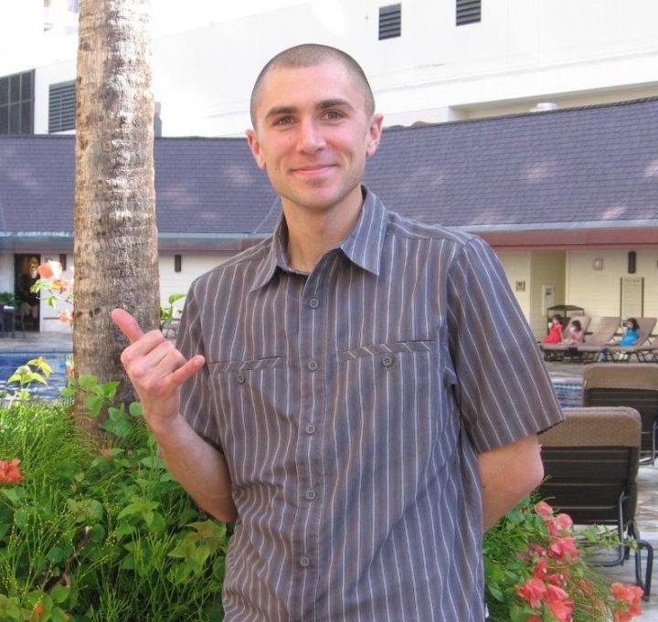 PHOTO: Nick Stanko relaxes poolside before the 2010 Honolulu Marathon (photo by Jane Monti)